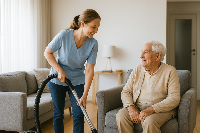 Wir unterstützen Sie im Haushalt, damit Ihr Zuhause ordentlich, sauber und gemütlich bleibt. Ob Reinigung, Wäsche, Aufräumen oder kleine Handgriffe im Alltag – wir packen zuverlässig mit an. So bleibt mehr Kraft und Zeit für die schönen Dinge.