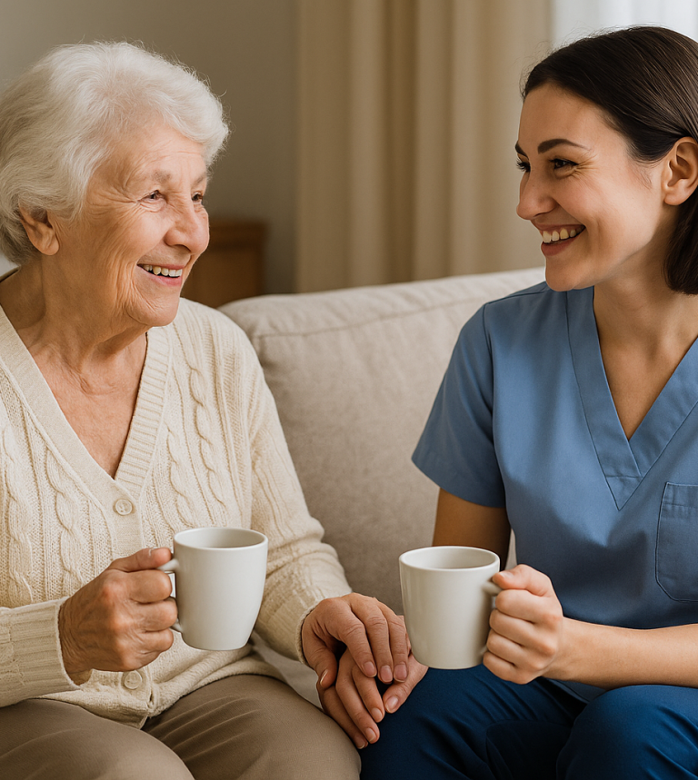 Wir nehmen uns Zeit für Sie – für Gespräche, Zuhören, Lachen und gemeinsame Momente. Ob beim Kaffee, beim Spazierengehen oder beim Erinnern an frühere Zeiten: Wir schenken Aufmerksamkeit und Nähe. So fühlt sich der Alltag weniger einsam an.